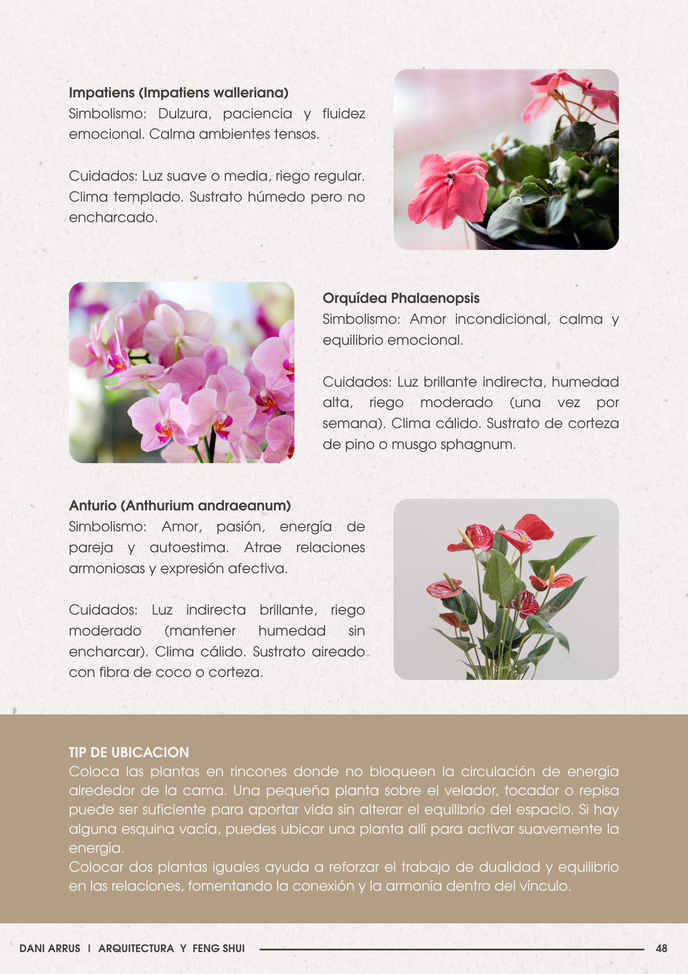 - Más de 70 especies recomendadas para cada ambiente de la casa según su simbolismo y energía.